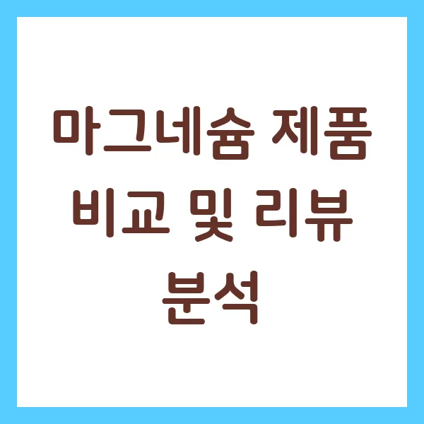 이 글에서는 마그네슘 섭취의 중요성과 함께 시중에 판매되는 다양한 마그네슘 제품들을 비교 분석하여, 여러분의 필요에 딱 맞는 제품을 선택하는 데 도움을 드리고자 합니다. 자신에게 맞는 마그네슘 제품을 찾아 건강하고 활력 넘치는 일상을 되찾으세요!